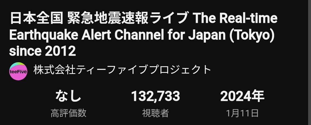 YouTubeの生配信緊急地震ライブ、視聴者が10万人を突破!いったい何が起きるんですか?!