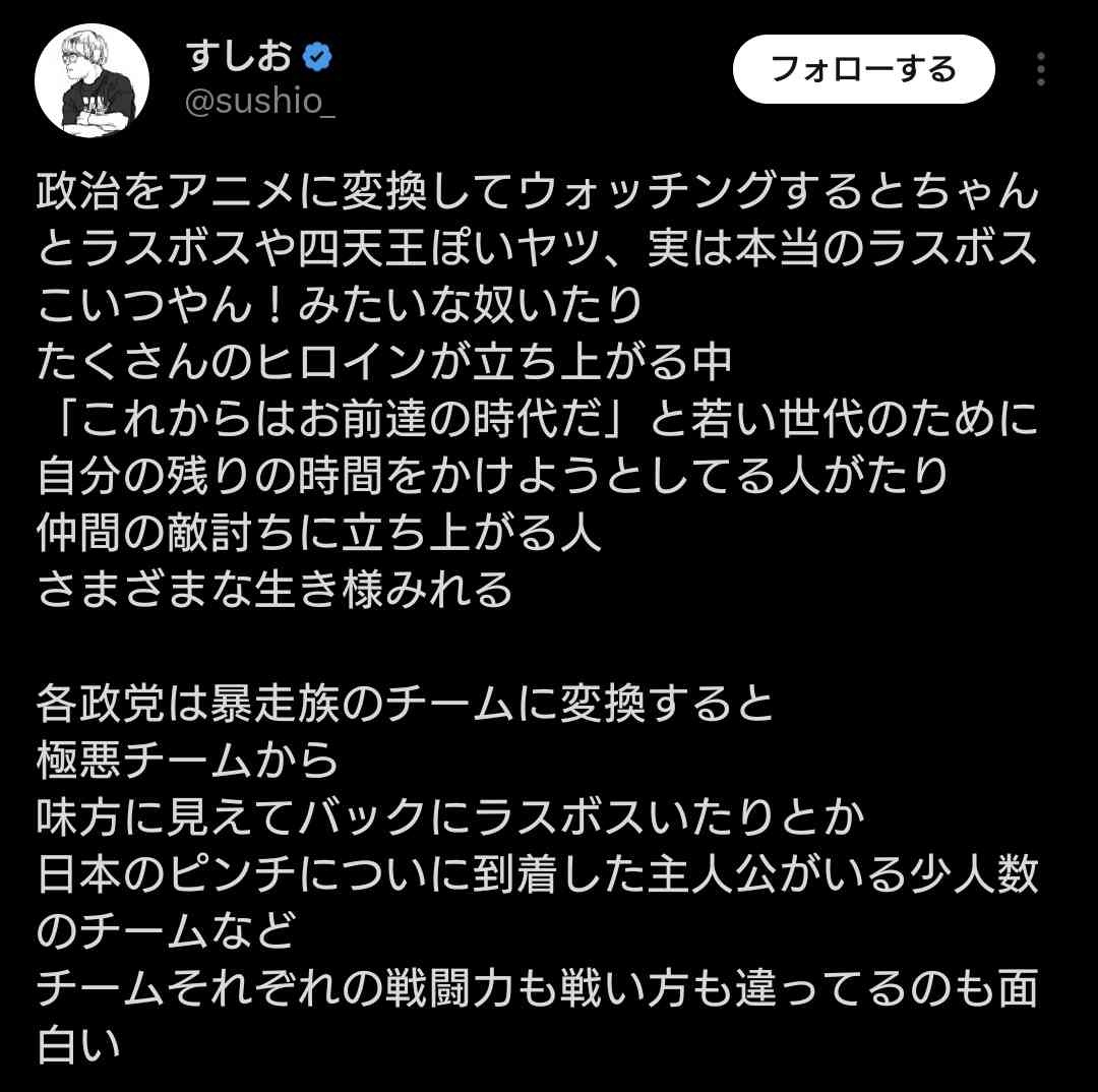 - 人生周回遅れで急に政治に目覚めた奴にありがちな奴じゃん