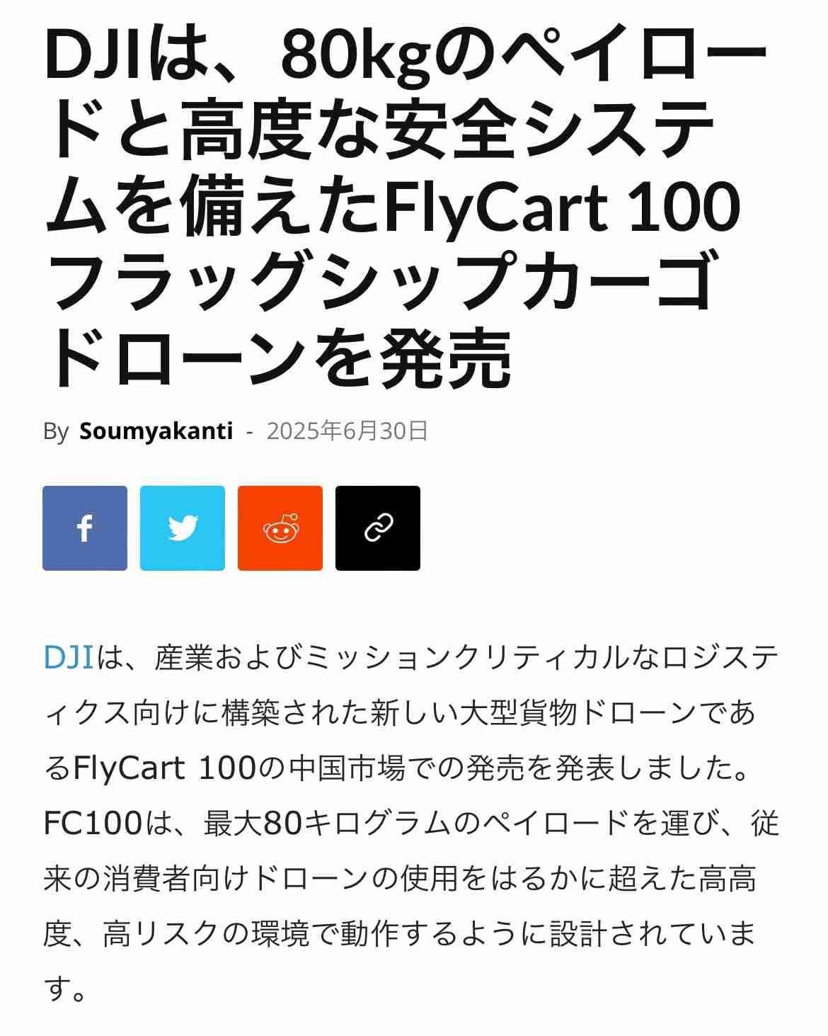 https://www.gizmochina.com/2025/06/30/dji-flycart-100-cargo-drone-launched-specs-price/- 2 : 2025/07/11(金) 00:11:04.33 ID:kf9+qYFw0