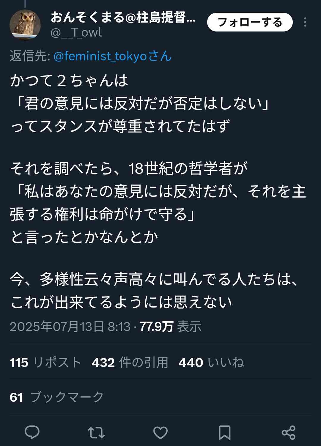 【画像】ツイッタラー「かつて2ちゃんは「君の意見には反対だが否定はしない」ってスタンスが尊重されてたはず」