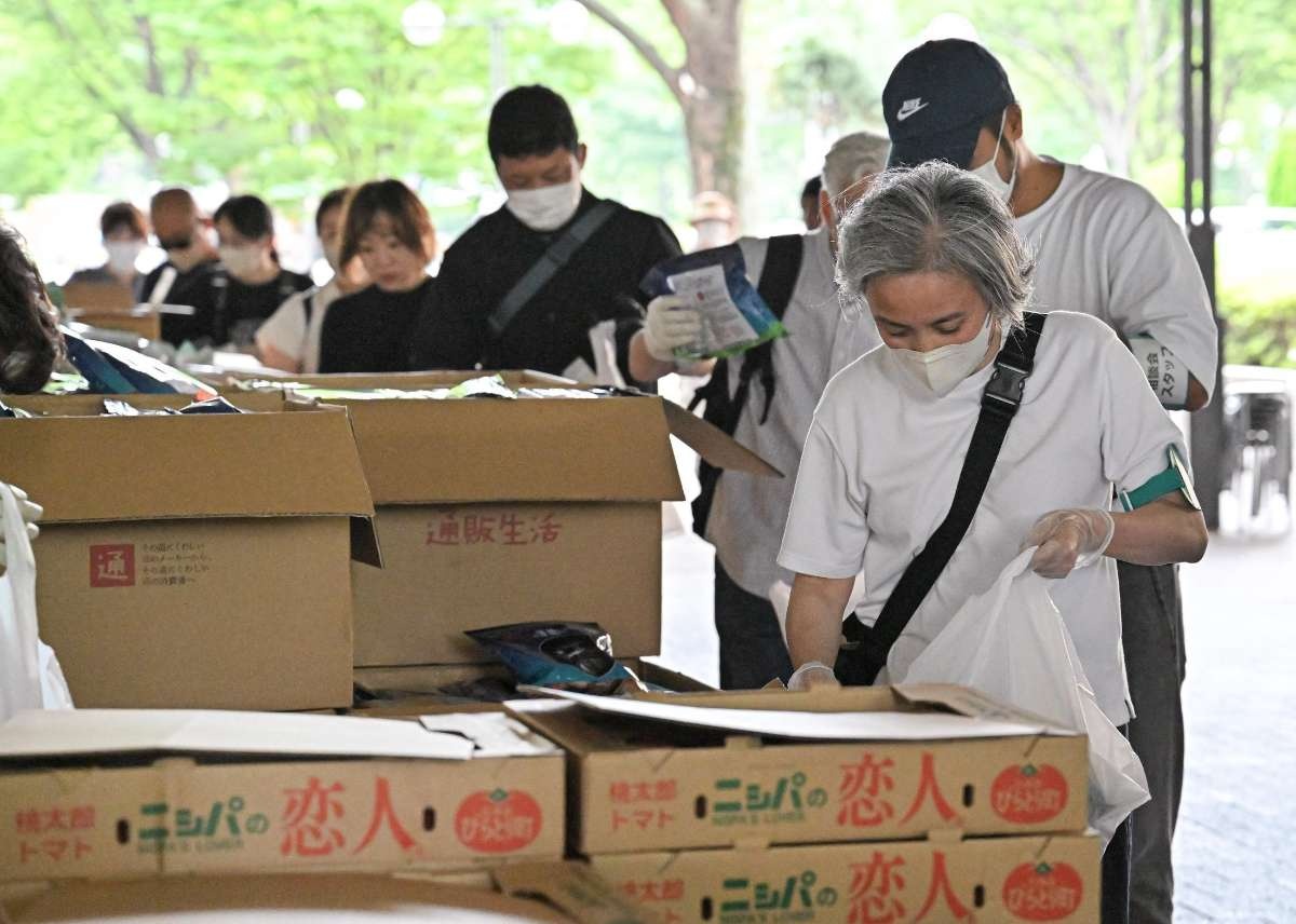 リュックを背負い、トートバッグを肩に掛けた鈴木さんはスタッフからレトルトのご飯や野菜、水などが入ったビニール袋を受け取ると、再び列の最後尾に並んだ。だが、到着の遅れが響いて2袋目を受け取ることはできなかった。