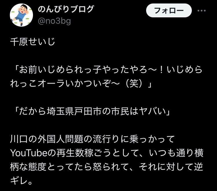 しかも事前に冷やかしみたいな川口ロケをしていて動画を公開したけど、川口の問題に全く真剣に向き合おうとしてないクソみたいな映像だった - 14 : 2025/07/19(土) 09:22:32.10 ID:FAW5w3j80