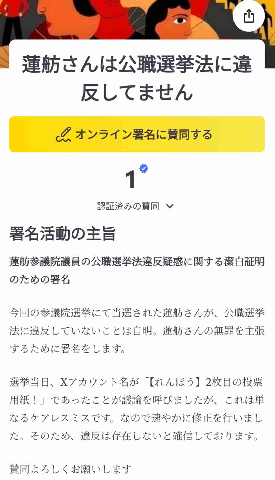 有名X民さん「蓮舫さんは公職選挙法に違反してないよ!反対署名を立ち上げます!!!」→全く署名が集まらなくて物議