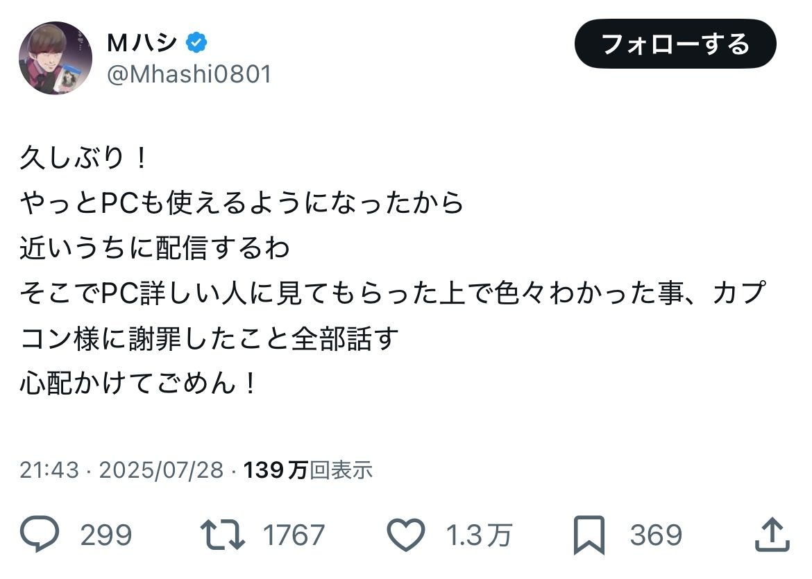 モンハンワイルズにPC破壊され絶叫した公認配信者「近いうちカプコン様に謝罪したこと全部話す」