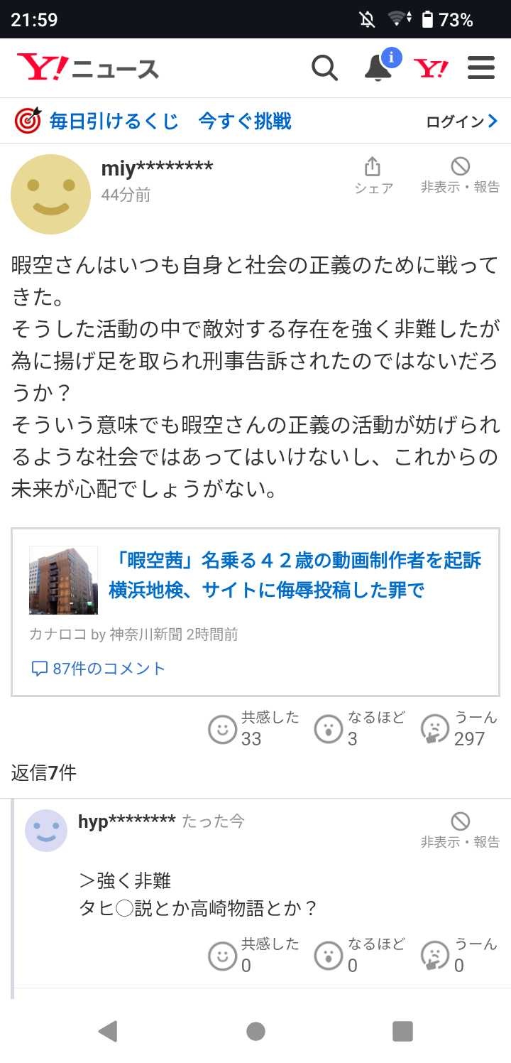 暇空茜さん、ヤフコメ民にうっすら嫌われ始める