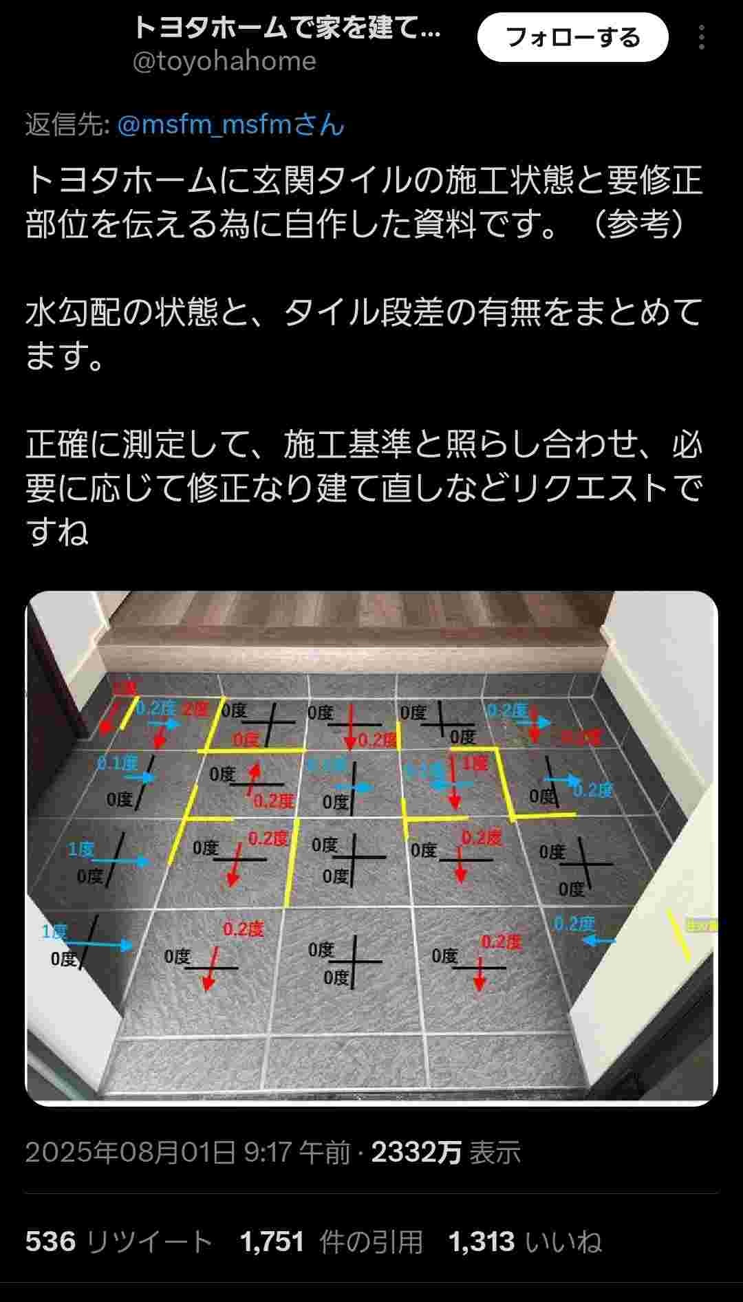 トヨタホームズの施工に文句をつけたツイッター民、糞客の典型だと袋叩きにされてしまう