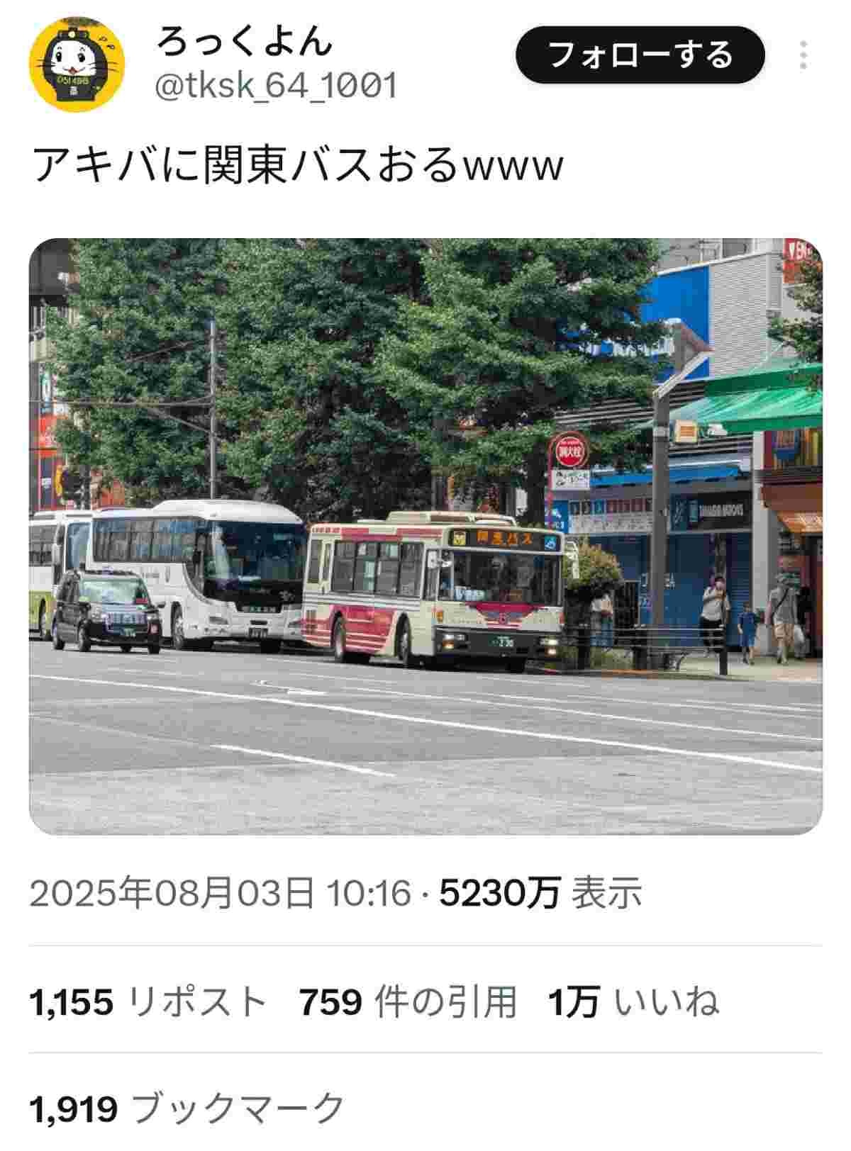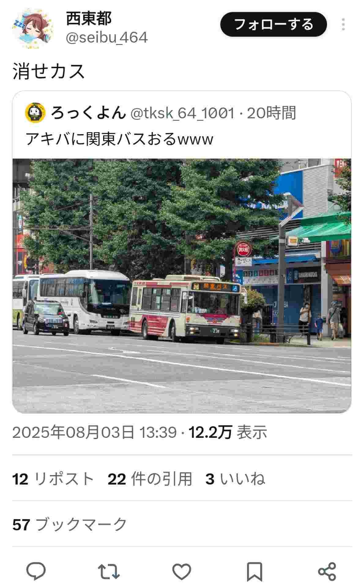 一般人は関東バスとやらがアキバにあるのが何が面白いのか全くわからないから写真すら撮らない - 117 : 2025/08/04(月) 07:15:33.48 ID:NTvMcOv90