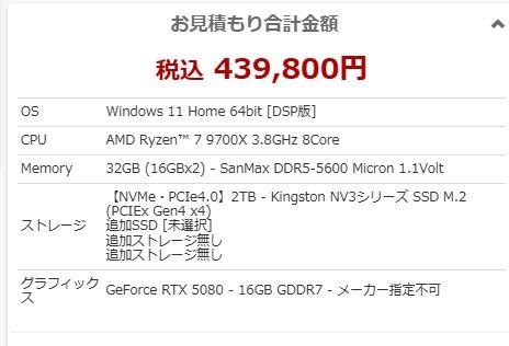 最初はbtoにしようとした名残で比較したら似たスペックで44万とか出たが - 12 : 2025/08/06(水) 08:23:37.21 ID:lhCjoiis0