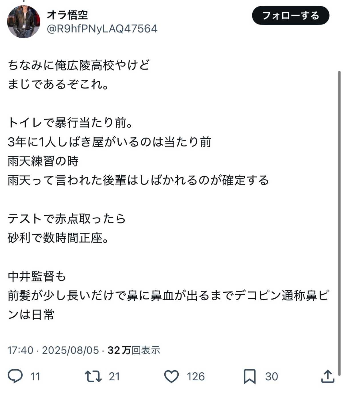 - ヤバすぎて草だけど、他の脳筋系の高校も大なり小なりありそうだよな