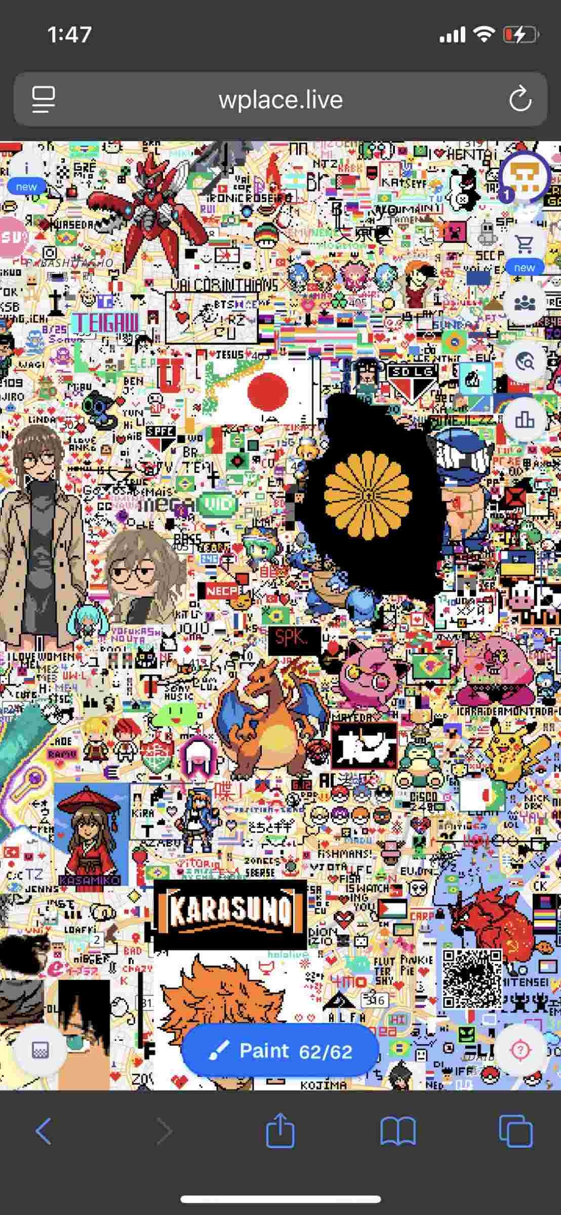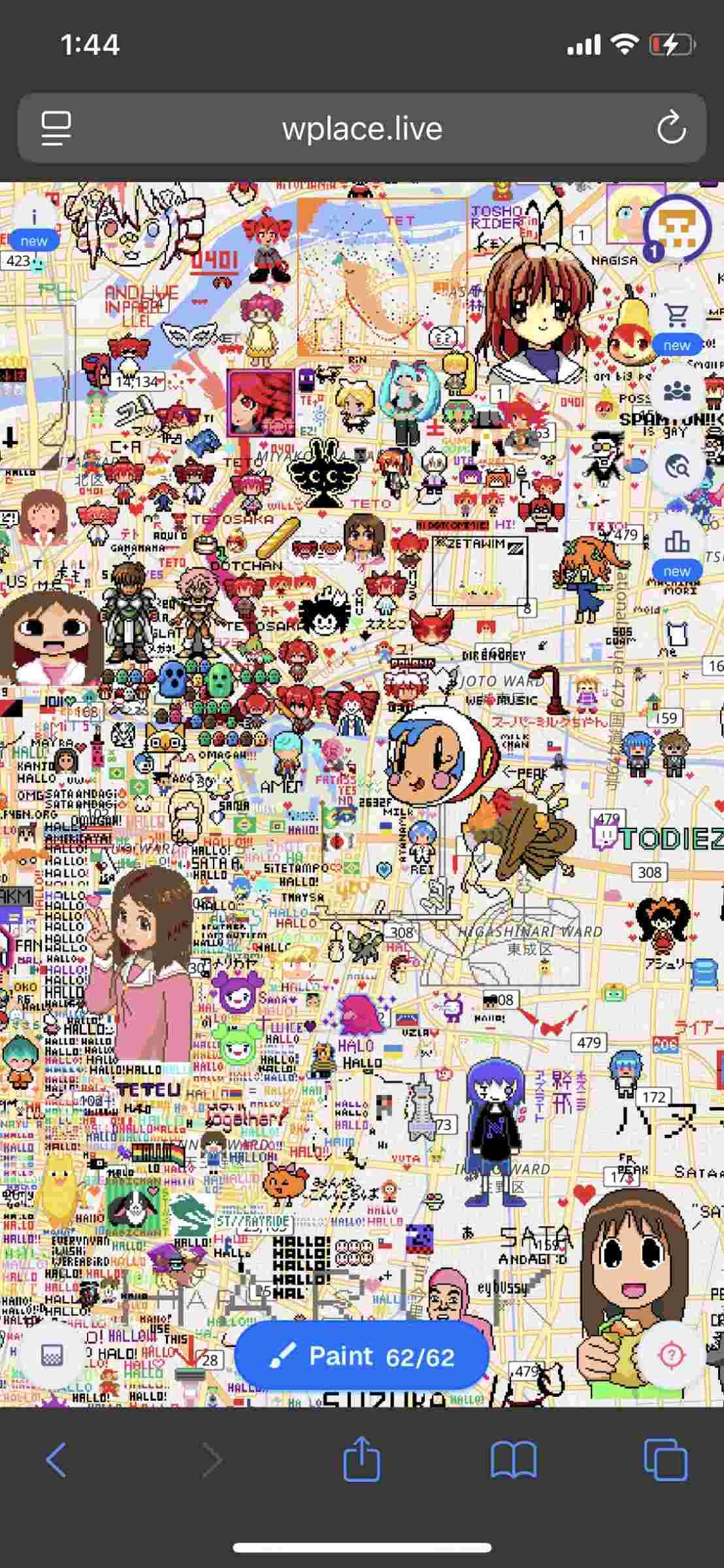 Wplace - A massive real-time pixel art canvas on the world map!Wplace is a collaborative, real-time pixel canvas layered over the world map, where anyone can paint and create art together.wplace.live- 2 : 2025/08/10(日) 07:20:58.41 ID:HFXWXlAKa