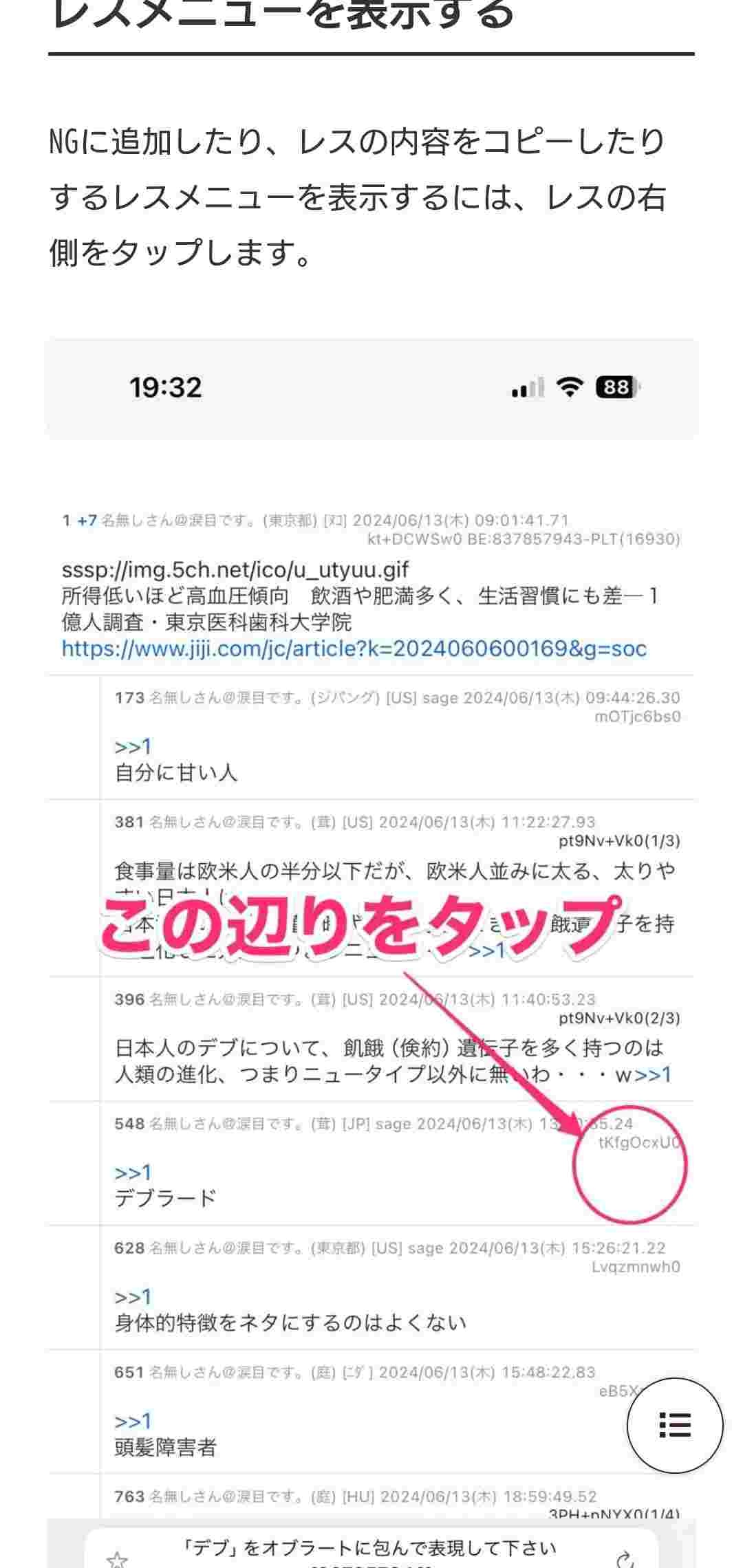 ブラウザからならレスの番号押してみ