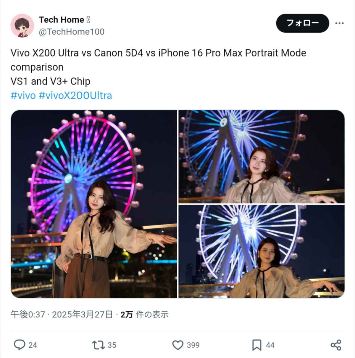 Tech Home (@TechHome100) on XVivo X200 Ultra vs Canon 5D4 vs iPhone 16 Pro Max Portrait Mode comparison VS1 and V3+ Chip #vivo #vivoX200Ultrax.com - 55 : 2025/08/25(月) 08:42:41.32 ID:zvlrPz8X0
