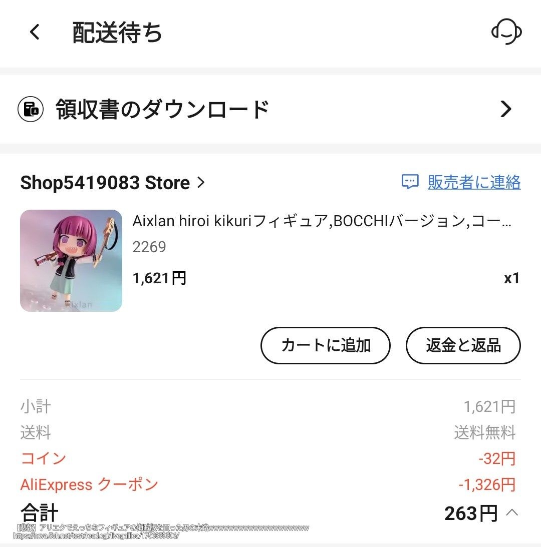- ワイもアリエク初フィギュア配送待ち中