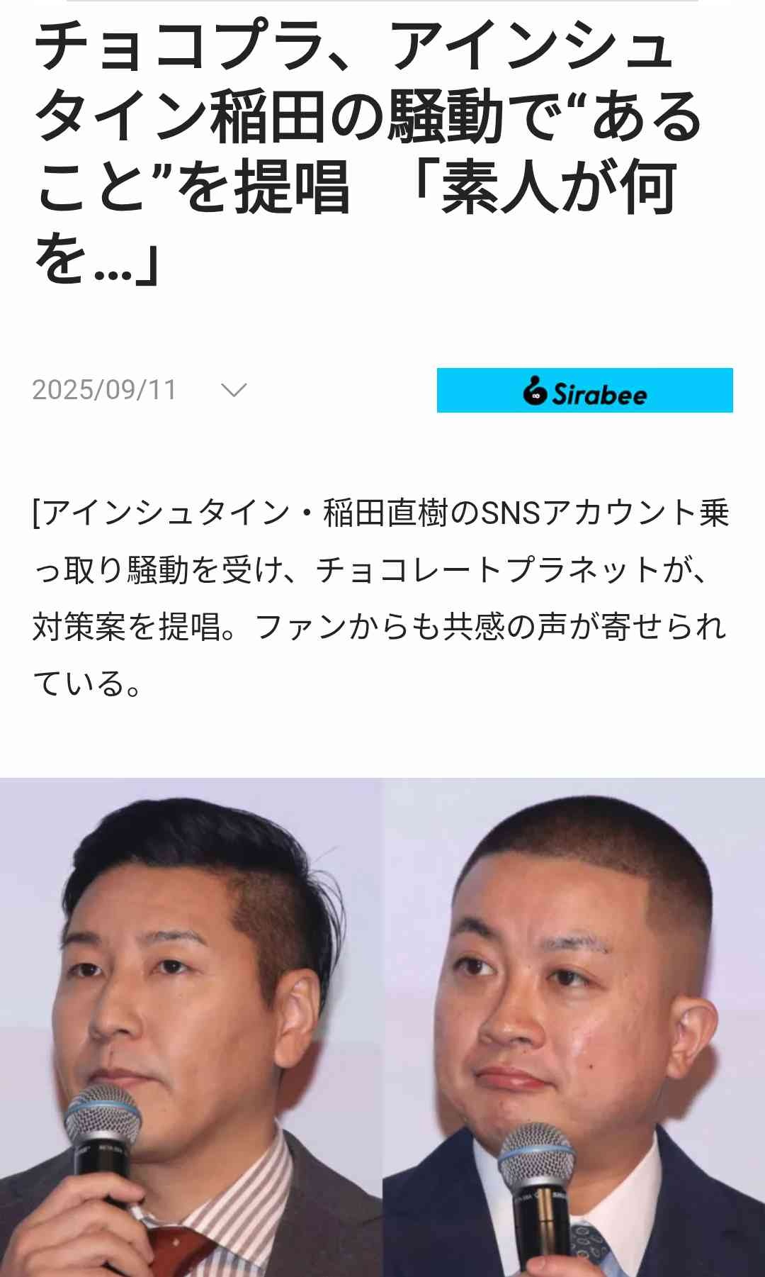 乗っ取った奴が他の人のアカウントも乗っ取って同じことしてたらしいから流石に稲田はセーフや - 8 : 2025/09/15(月) 07:40:56.38 ID:A9BLhy7A0