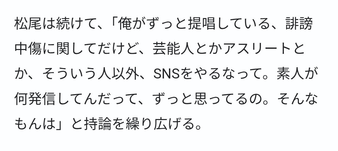 チョコプラ松尾「SNSは有名人のもの。素人は使うな。素人の発信なんか意味ない。有名人の発信を見ろ」