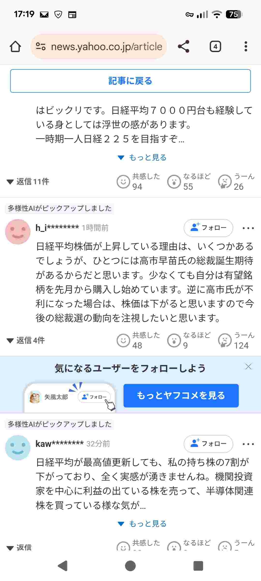 【日経平均45,000円台】ヤフコメ民「日経平均が爆上げしてるのは【高市早苗さん】が総裁になる期待が原因」⇐これマジなの?