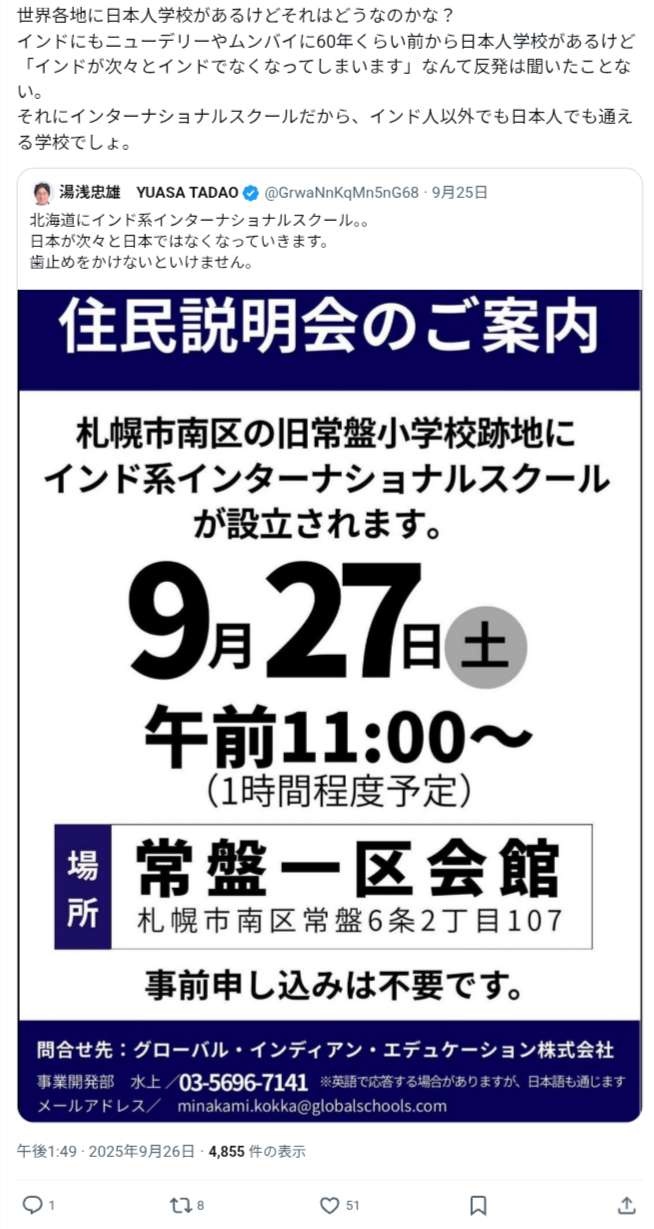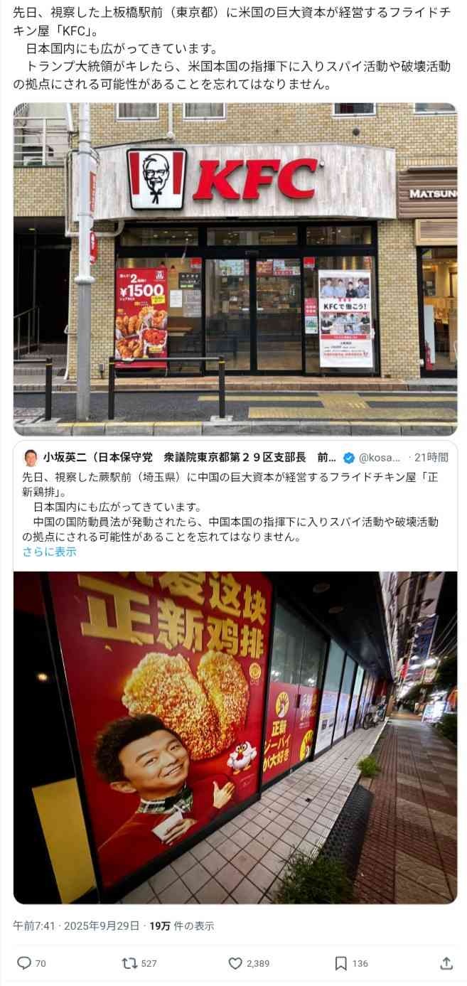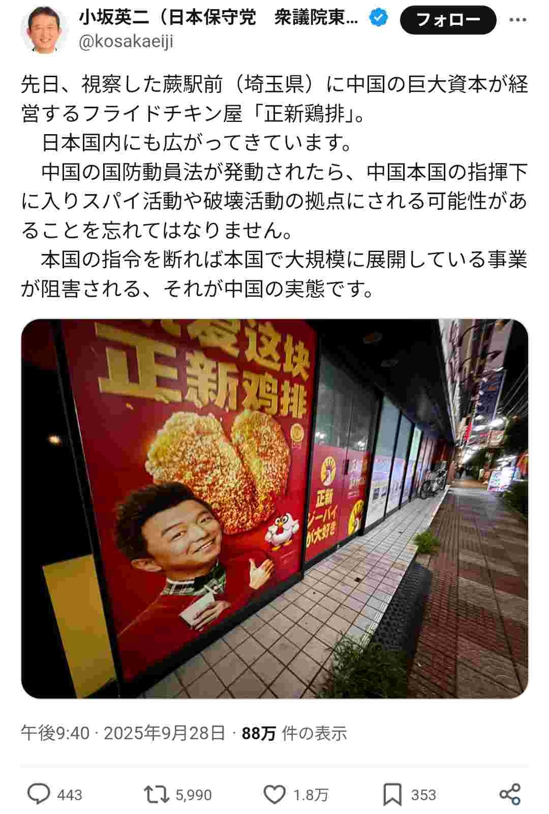 Twitter保守「日本にインド人学校や中国資本のチキン店が作られて日本が侵略されはじてます!」