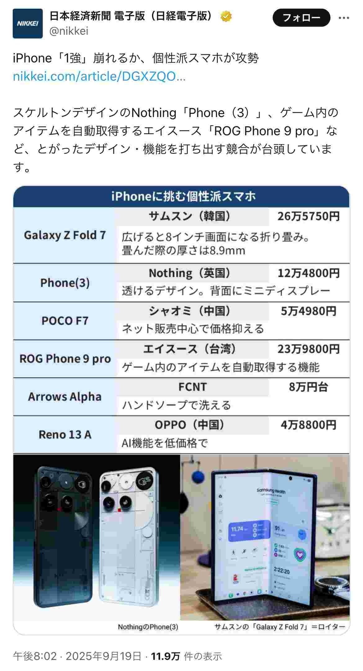 日経新聞「iPhoneを迎え撃つ個性派Androidスマホがこちら」
