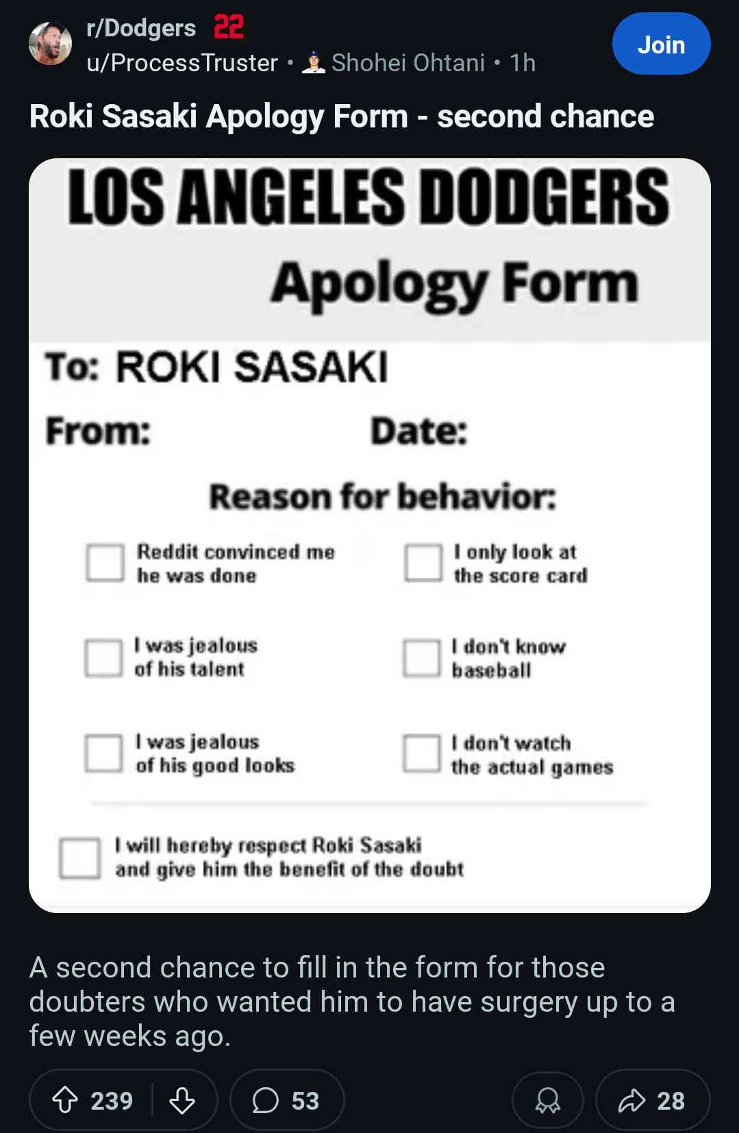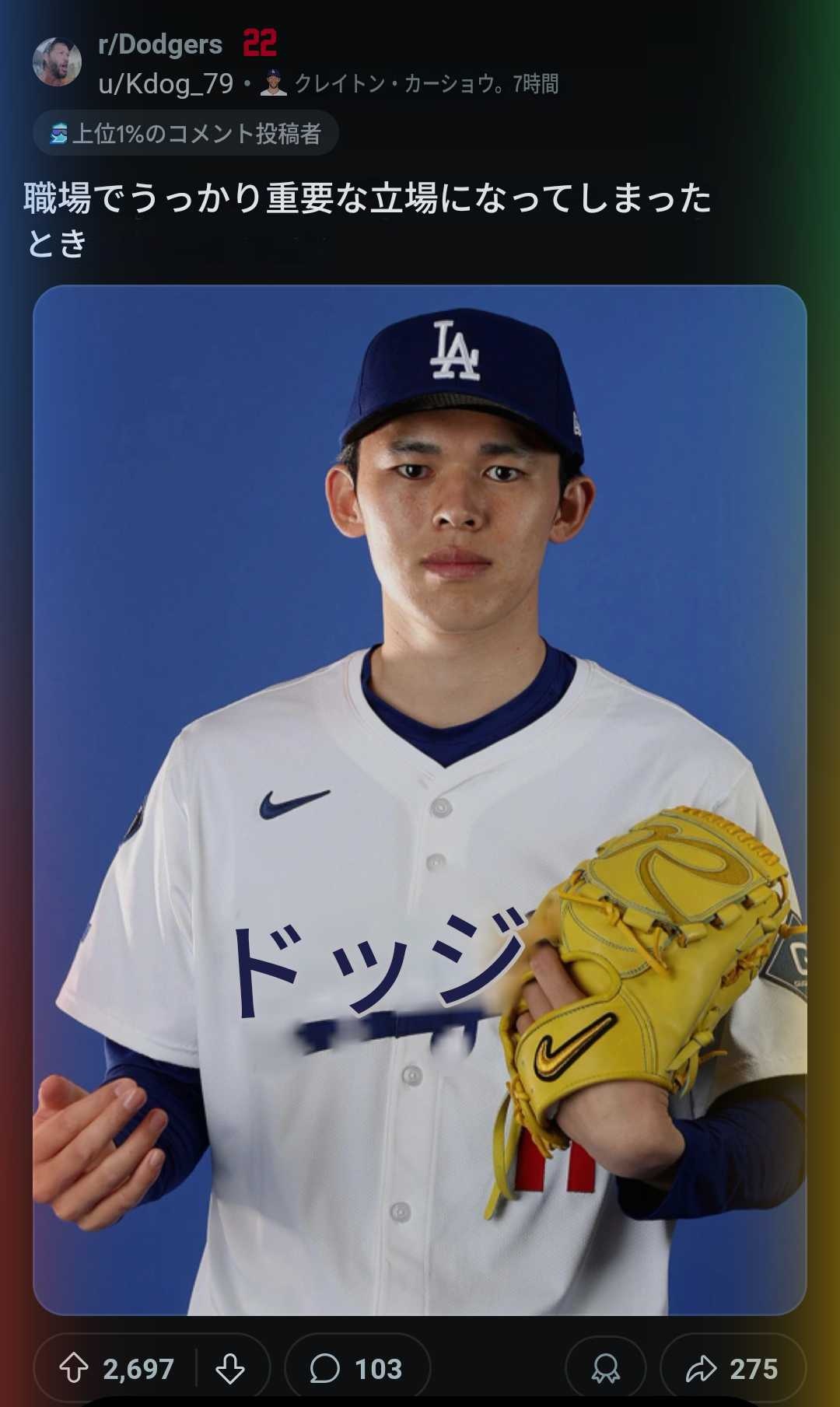 佐々木朗希、ドジャースredditで大絶賛されだすwww