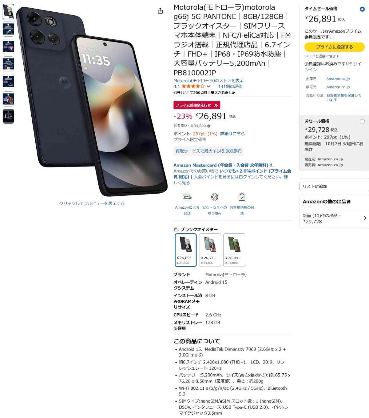 【格安スマホ】「モトローラg66j 8GB/128GB 26,891円」👈アマゾンセールのこれってどうなん?
