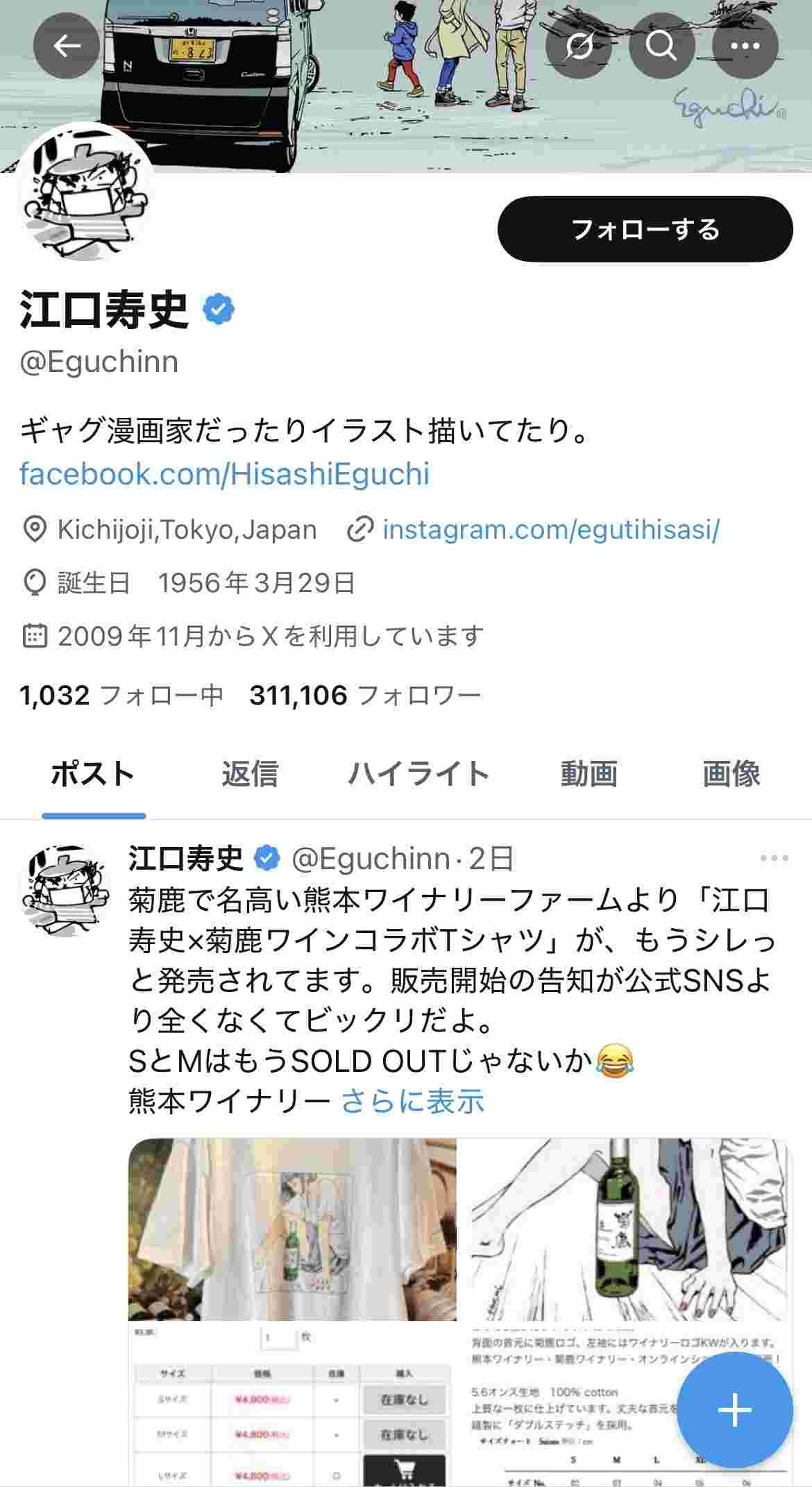 イラストレーター江口寿史さん、最後のツイートから2日経過