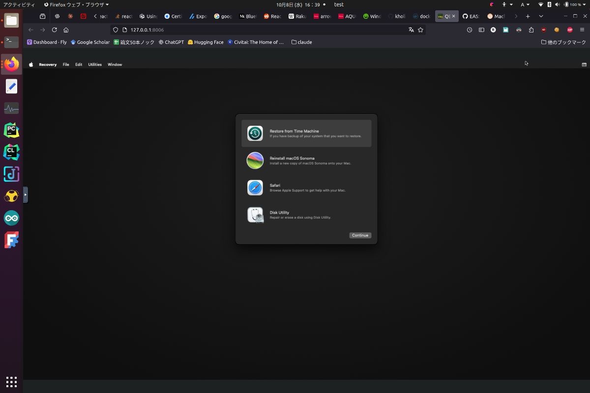 そこで全部仮想環境に入ってるdockurr/macosなるイメージを見つけたのだが。。。