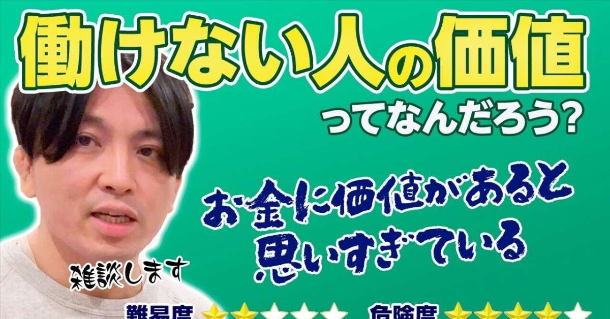- 僕が最近よく考えている思考実験の一つが、よく聞かれるんですよ、「働けない人の価値」ですね。働いていない人の価値とはということでです。