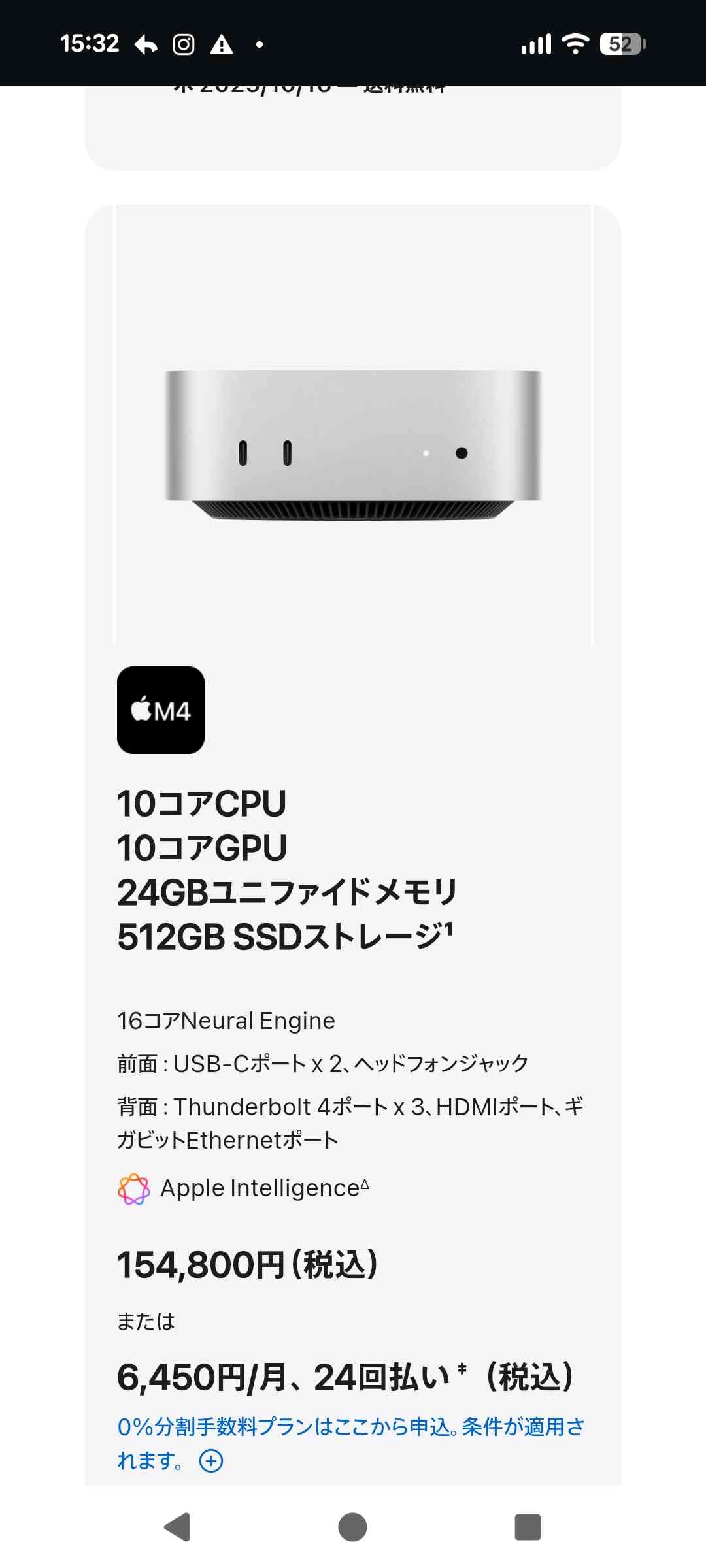 - mini定価8万で学割とAppleギフトカード還元キャンペーンでの実質5万円台だったわ