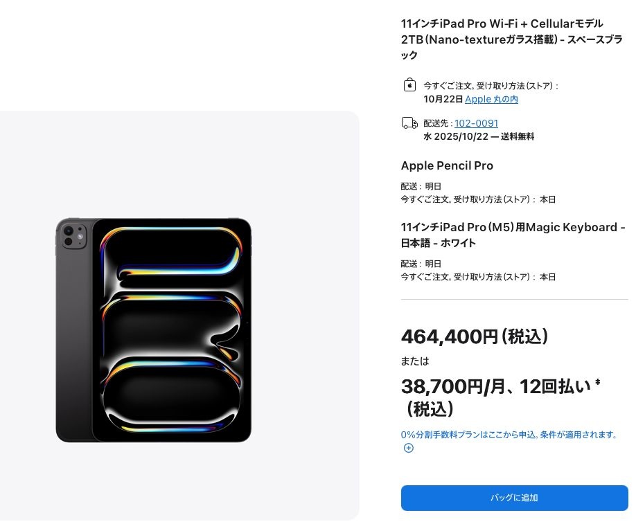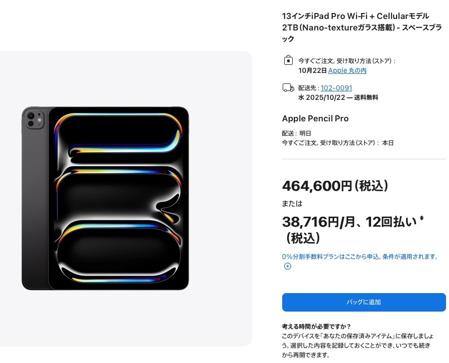 一方、13インチiPad Proは、Wi-Fiモデルが21万8800円~、Wi-Fi + Cellularモデルが25万4800円~。1TBか2TBであればNano-textureガラスのオプションを選択できる。