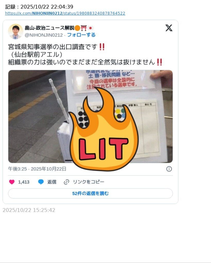 参政党支持者のYouTuberが独自で宮城県知事選の「出口調査」
