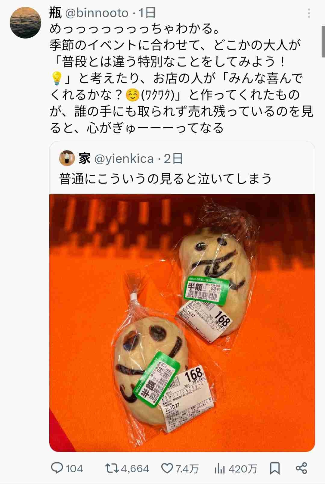 - 製作者がどうとかそこまで深い意味じゃなくて魂宿ってるように見えるもんに半額シール貼られて売れ残ってるのがモヤッとするだけちゃうのん
