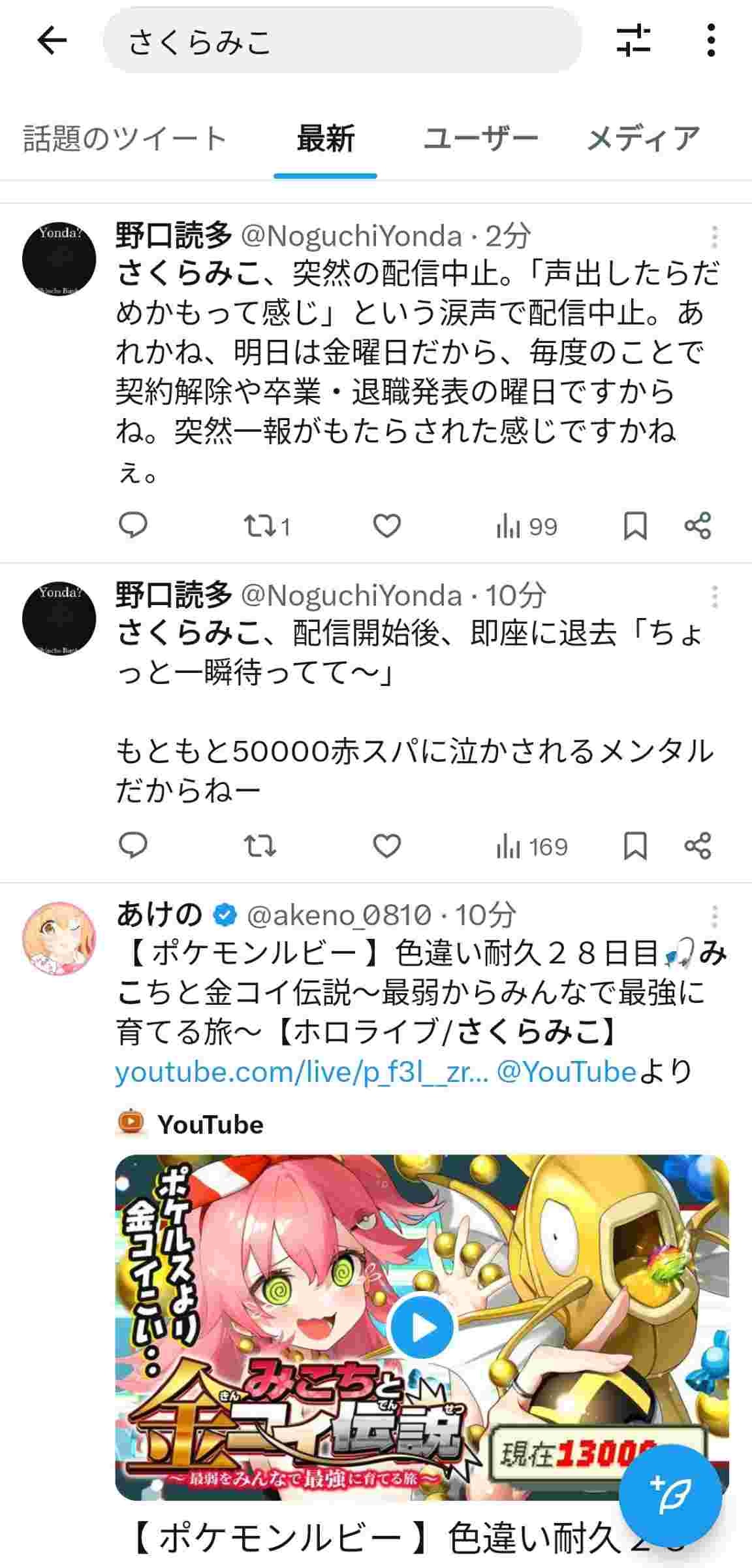 - 「いいね」「謝罪」っていうワードを昼過ぎに見たからそれの関係なのかと思ってググッたけどその件とさくらみこ全く関係なかった