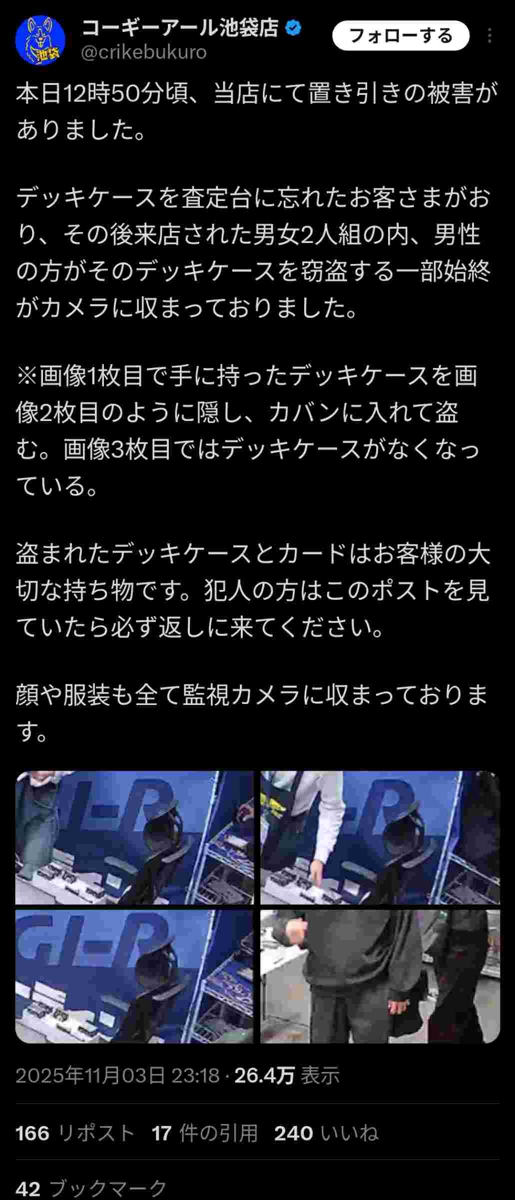 カードショップさん、防犯カメラを晒せば犯人が自首してくることを学びまた晒すwww