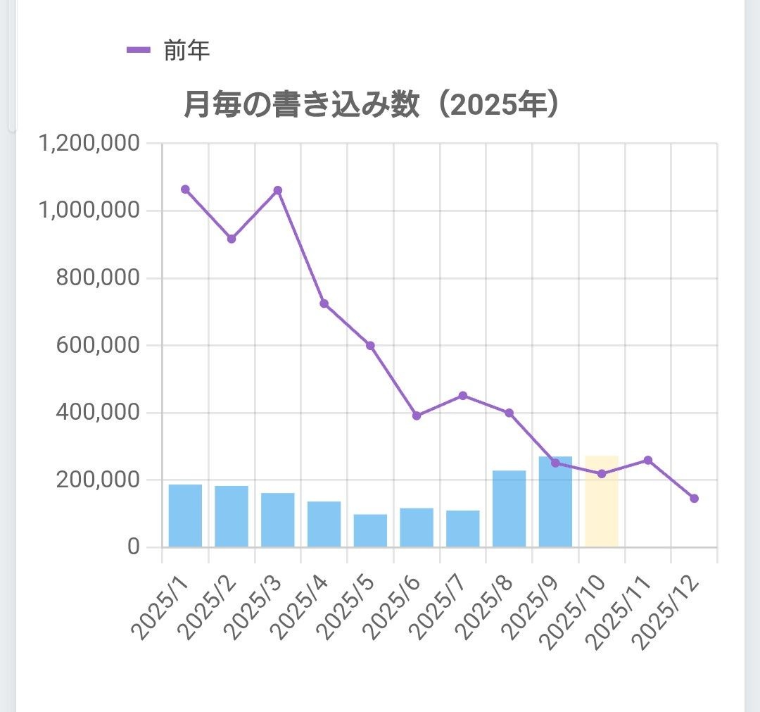 - 今年のなんJの書き込み数推移や