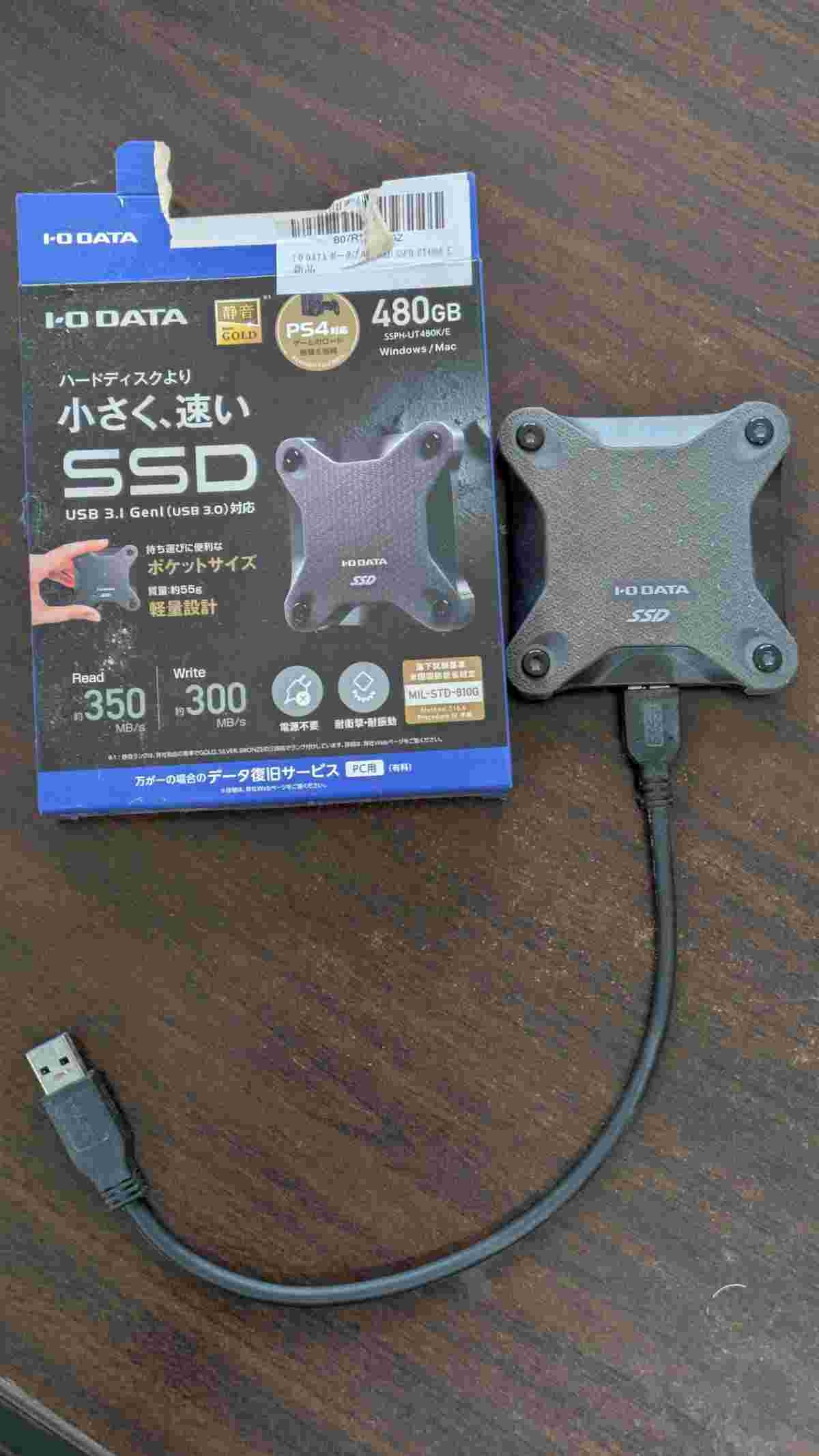 - なんでSSDにしたのかって言うと電源が不要で取り回し楽ちんだからだな