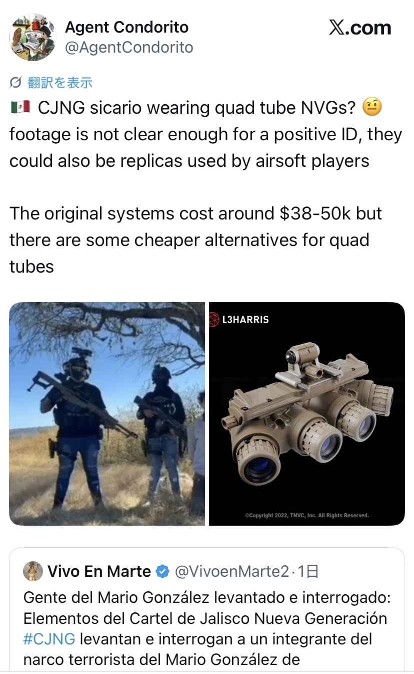 メキシコ人「麻薬カルテルに米軍の暗視ゴーグルが流出してる!」日本人「ヤフオクに米軍の暗視ゴーグルが流出してる」