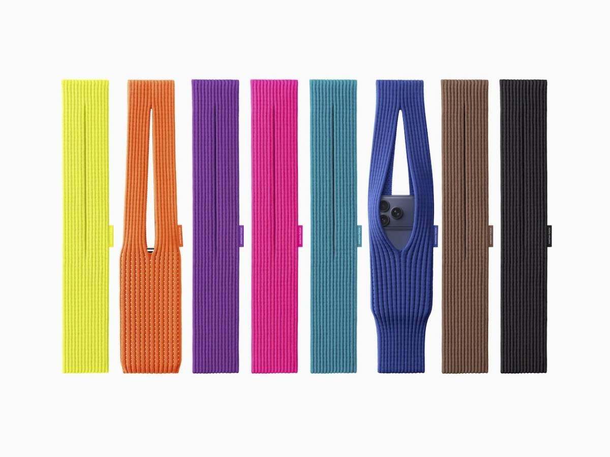 こうした背景から、ガジェット系/高級ブランドでも肩掛けや手持ちで持ち運べるスマホポーチの展開が広がっています。今回の「iPhone Pocket」は、サイズの異なるiPhoneに対応する必要があり、その点でイッセイミヤケの「プリーツプリーズ」は最適でした。