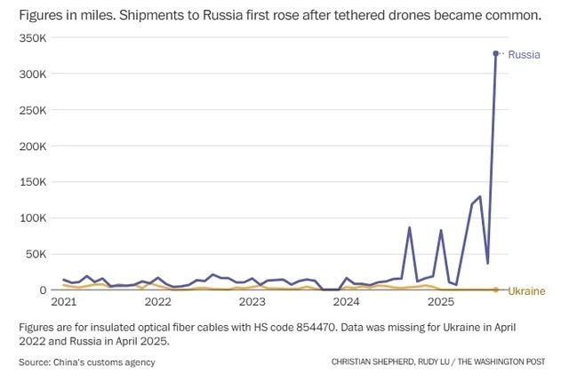 ウクライナ軍はごく一部のみ運用中国の自爆ドローン用光ファイバーケーブルをロシアに優先的に輸出してるのが原因です