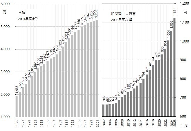 図3 最低賃金|早わかり グラフでみる長期労働統計|労働政策研究・研修機構(JILPT)