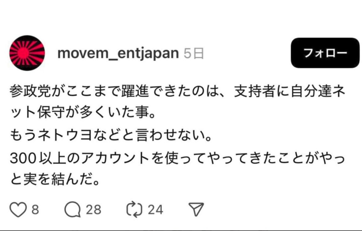 参政党支持者さん、1人で300超のアカウントを使ってSNS工作していた模様www