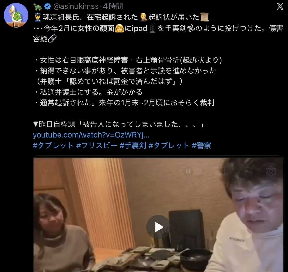 【動画】DV夫、生配信で妻の顔面にiPadを投げつけて顎骨骨折と神経障害を負わせる💥