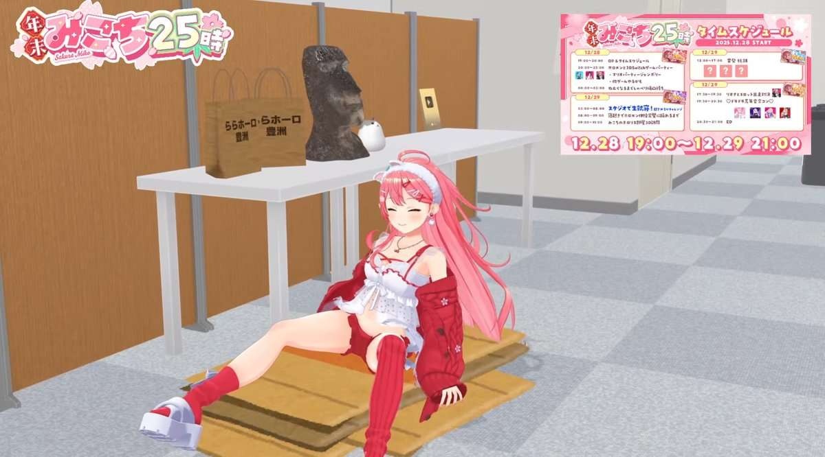 ホロライブさくらみこ、25時間生放送を始めるも早速段ボールの上に寝転がりえちちな姿を晒してしまう