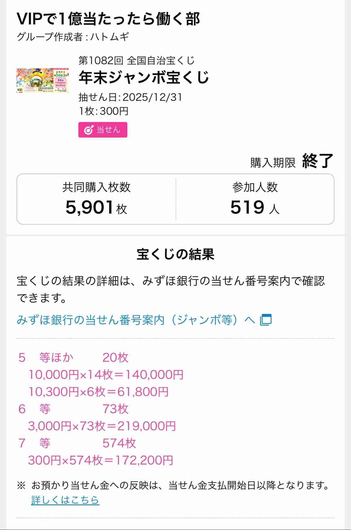 VIP宝くじ共同購入、60万当選W W W W W W W W W W W W