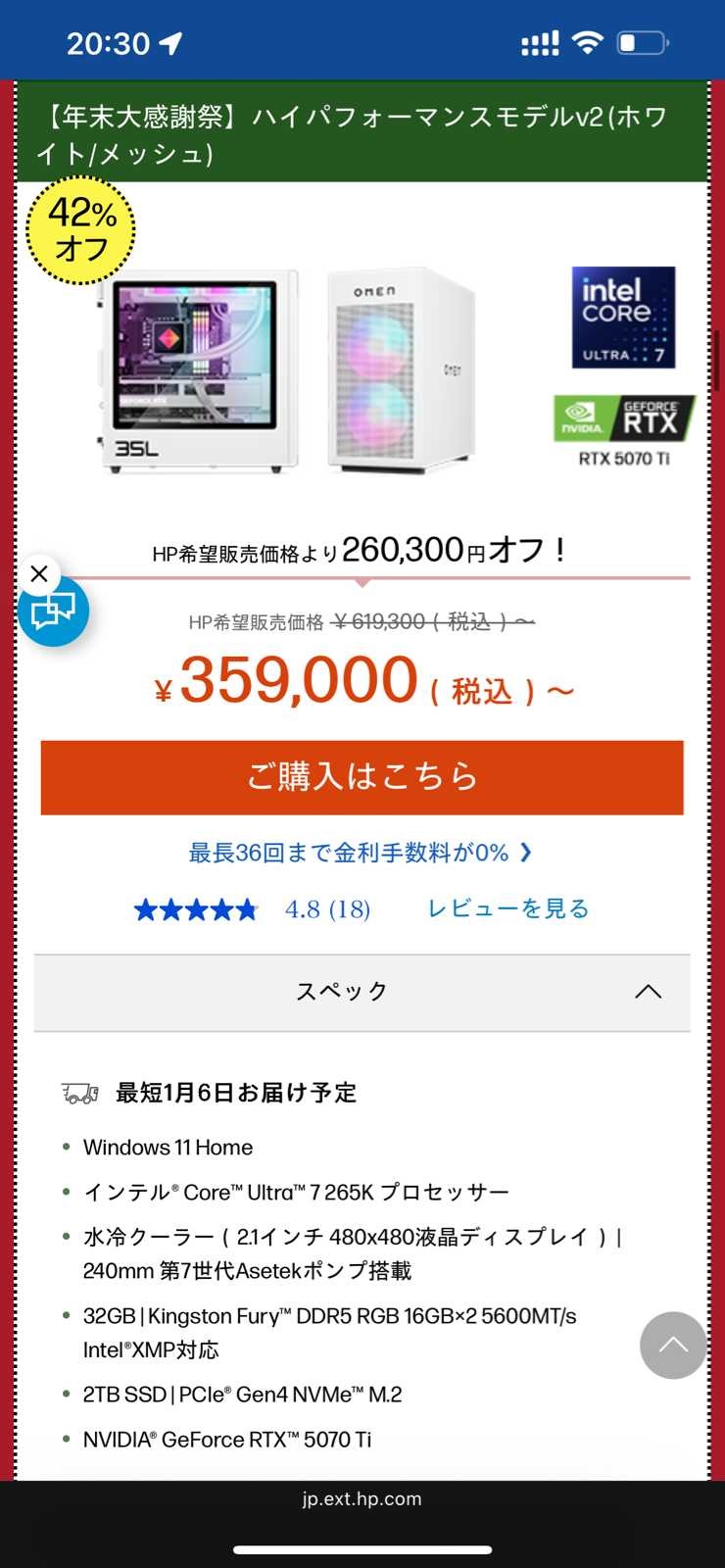 初売りゲーミングPCのスペックがこれ