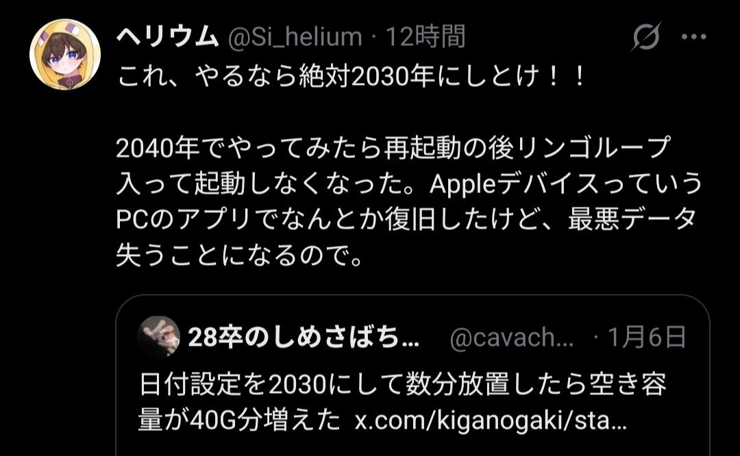 - 日付変えただけで文鎮になるiPhoneさんにも問題あると思うぞ