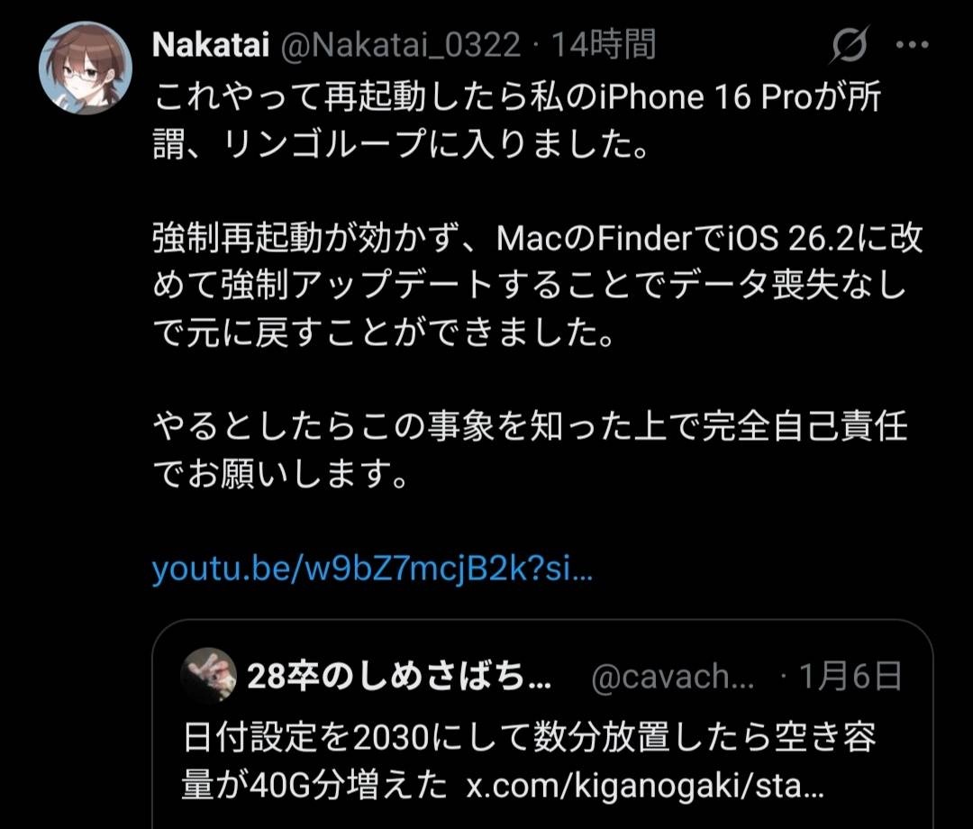 こんなのでおかしくなるあいぽんも大概やな - 30 : 2026/01/07(水) 21:28:37.38 ID:V1Y+kHIk0