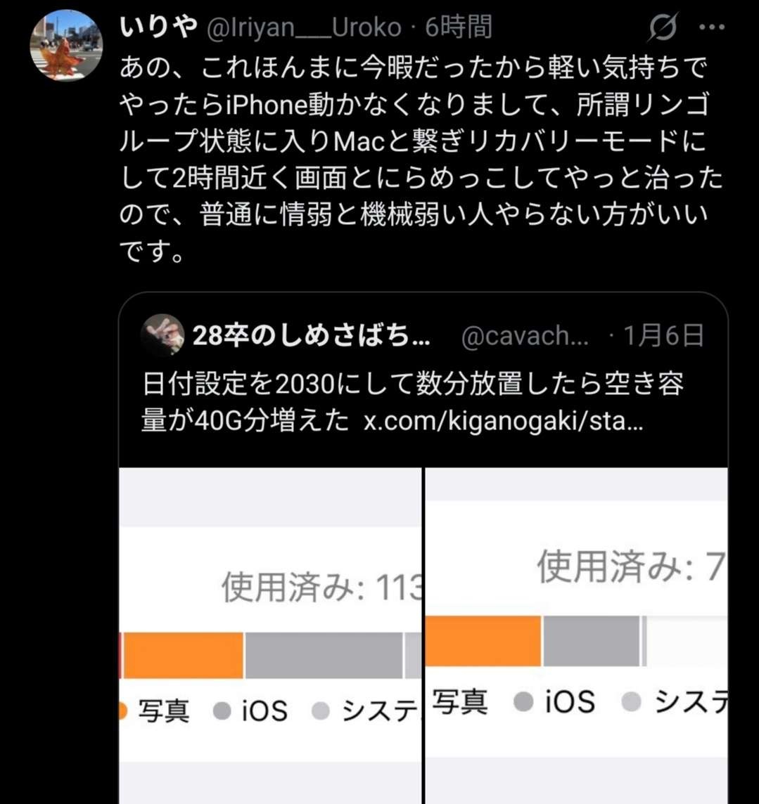 X民のiPhone、大量に文鎮化するwww