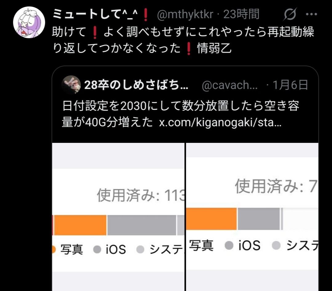 - キャッシュをバグ的なやり方で消したらスマホ動かなくなるってことか?