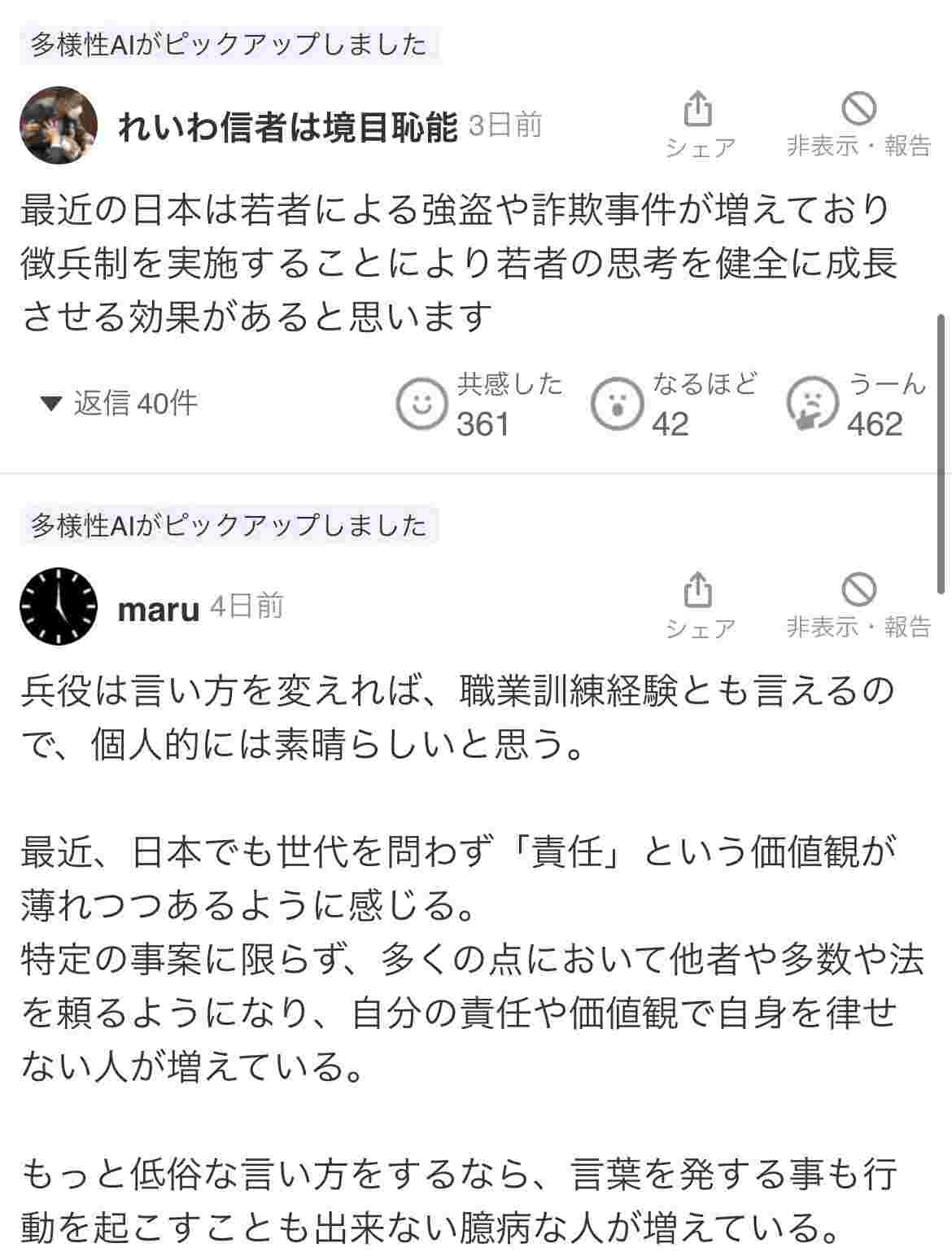 でも高市さんが血迷って徴兵制とか言い出したらリアルヤフコメ爺みたいな議員がめっちゃ賛同しそうだよな