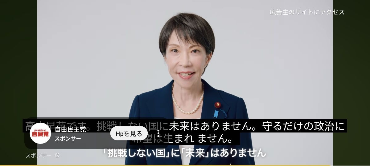 高市のCMだけじゃなく見たくもない顔を強制的に見せてくる作りの広告は不快だな